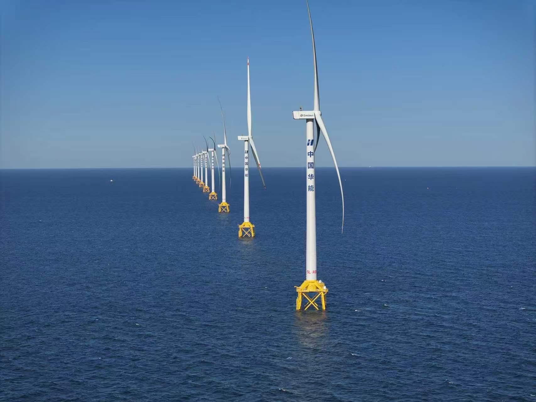 BEIJING, April 7 (Xinhua) -- China on Tuesday put its deepest offshore wind farm into full-capacity operation, marking breakthroughs in deep-water construction, large-scale turbine integration and precision installation technologies, according to state-owned China Huaneng Group.
