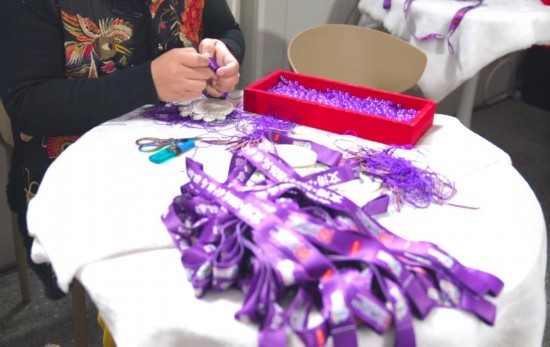 A craftswoman assembles ribbons onto the medals for the 2026 Dingzhou Half Marathon in Dingzhou city, north China's Hebei Province, March 13, 2026. (Photo: Xinhua/Dong Xiaokun)
