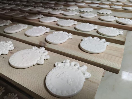 Freshly fired medals using the craft of Ding porcelain undergo air-drying in Dingzhou city, north China's Hebei Province, March 13, 2026. (Photo: Xinhua/Yang Fan)