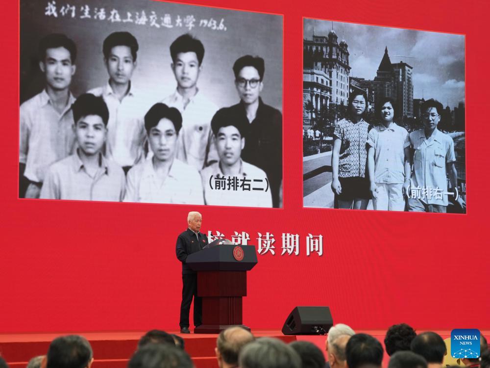 Long Lehao, a renowned rocket expert and an alumnus of Shanghai Jiao Tong University (SJTU), speaks at a ceremony marking the SJTU's 130th anniversary at its Minhang campus in Shanghai, east China, April 8, 2026.