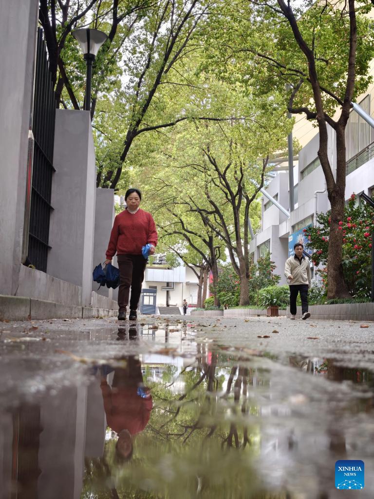 Pedestrians walk on a street in east China's Shanghai, April 9, 2026. (Xinhua/Xing Guangli)