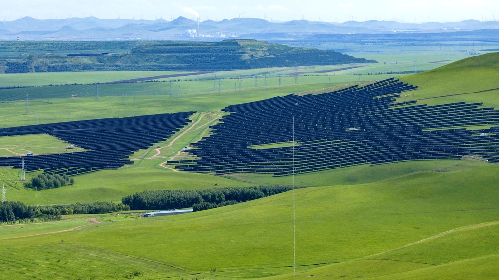 In the city of Chifeng in Inner Mongolia, rows of wind turbines and solar panels generate electricity to power a nearby zero-carbon hydrogen industrial park. This is China's largest-scale green hydrogen and ammonia project to date.