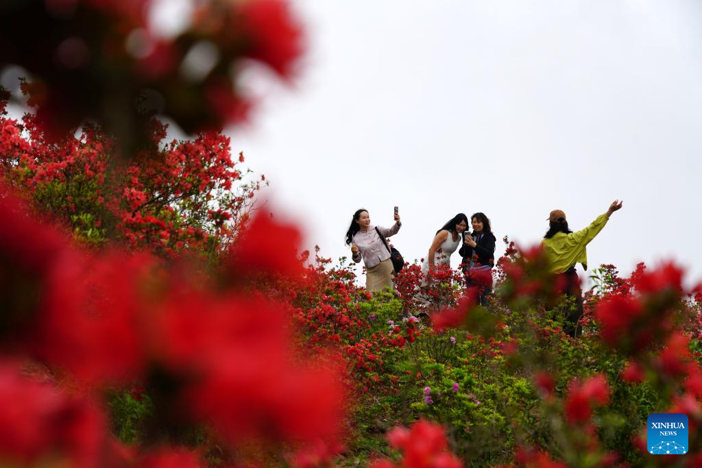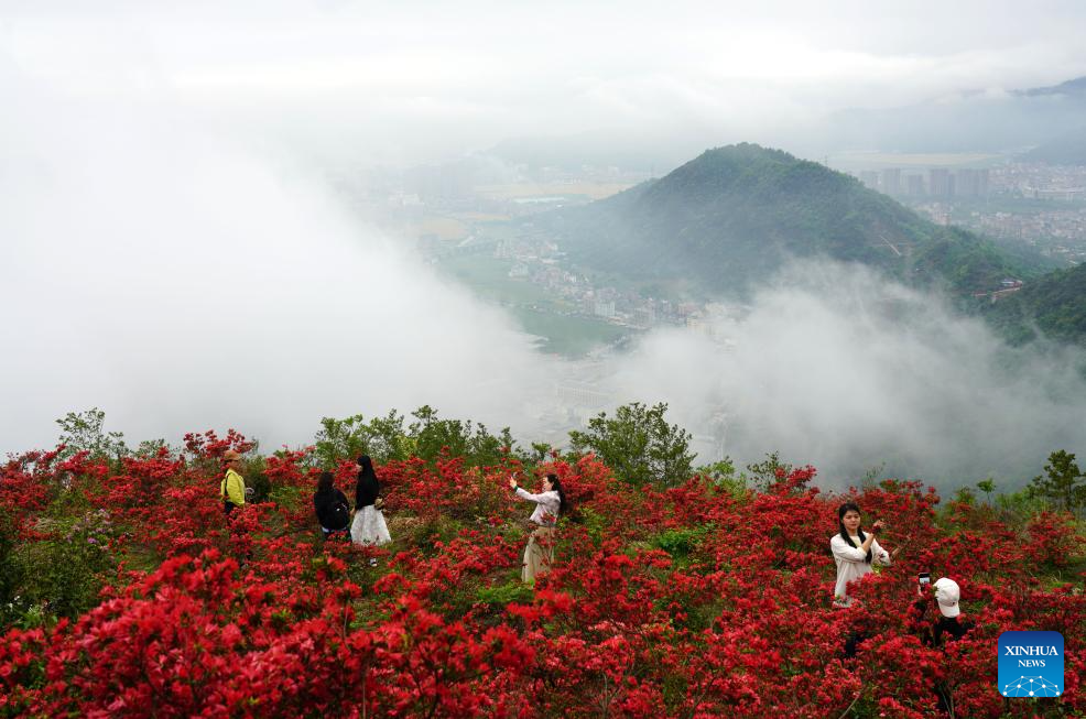 People have fun on the Bailong mountain in Yueqing City, east China's Zhejiang Province, April 12, 2026. (Photo by Cai Kuanyuan/Xinhua)