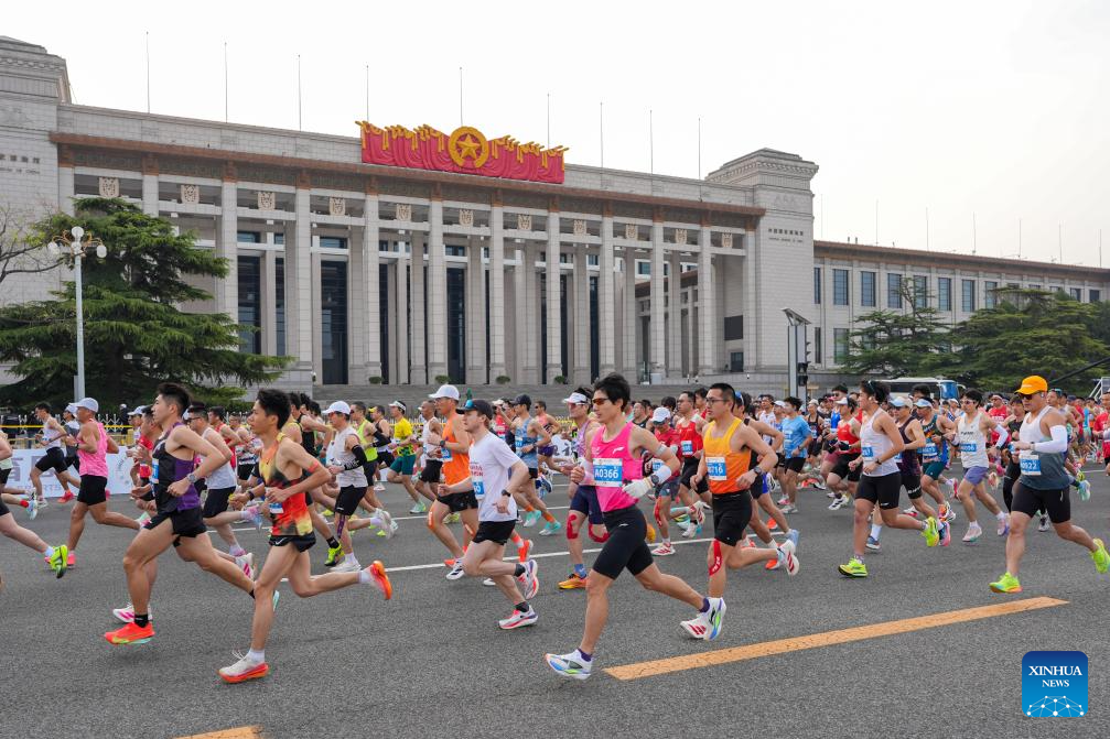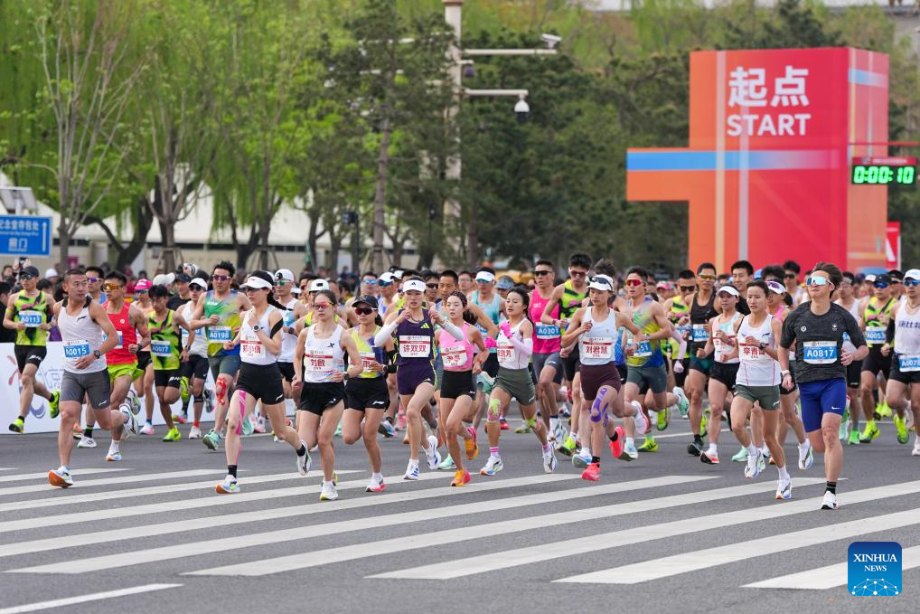 Participants start during the Beijing Half Marathon 2026 in Beijing, capital of China, April 12, 2026. (Xinhua/Ju Huanzong)