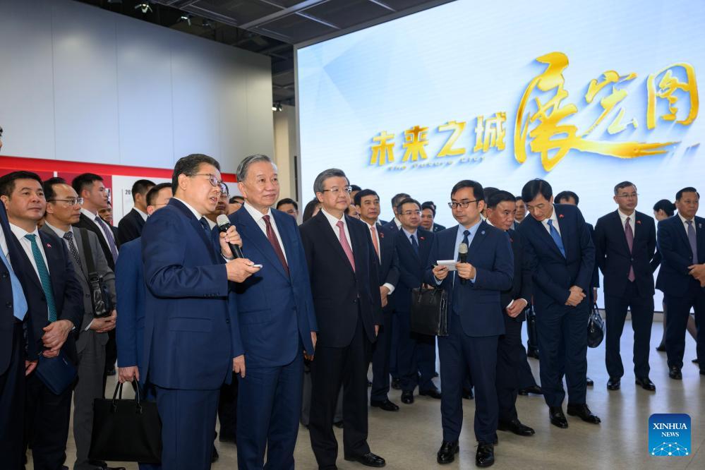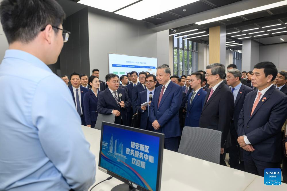 To Lam, general secretary of the Communist Party of Vietnam Central Committee and president of Vietnam, visits the comprehensive service center at the start-up zone of Xiong'an New Area, north China's Hebei Province, April 14, 2026.