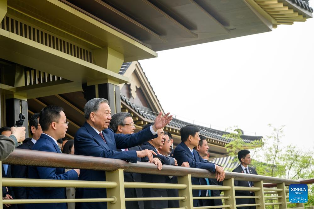 To Lam, general secretary of the Communist Party of Vietnam Central Committee and president of Vietnam, visits the central green valley in Xiong'an New Area, north China's Hebei Province, April 14, 2026.
