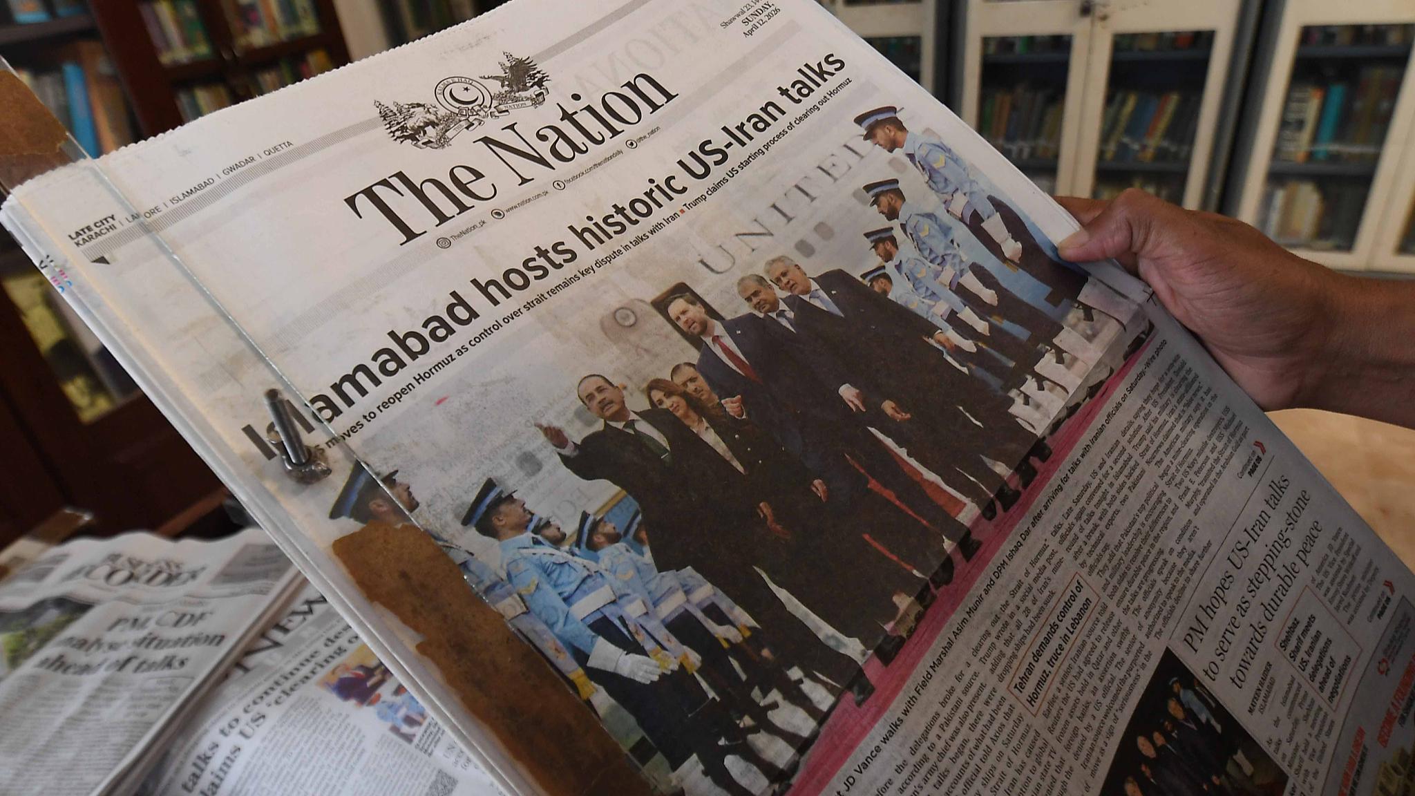 A man reads a newspaper after US-Iran peace talks in Pakistan, April 12, 2026. (Photo: VCG)