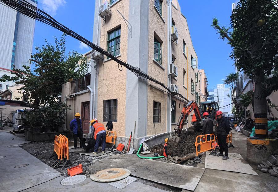 This photo taken on Oct. 31, 2025 shows the construction site of a sewage pipeline renovation project in an old neighborhood in east China's Shanghai. (Photo: Xinhua)