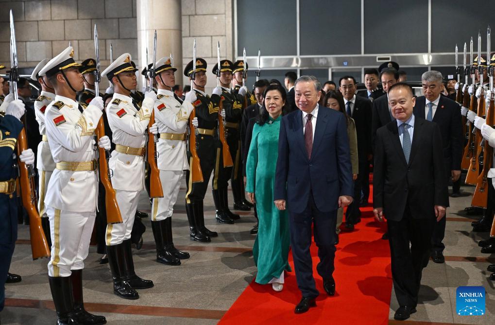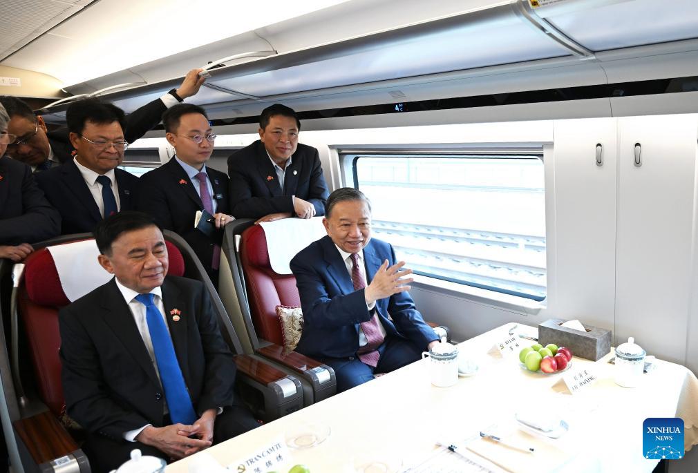 General Secretary of the Communist Party of Vietnam Central Committee and Vietnamese President To Lam, who is on a state visit to China, takes a high-speed train to leave Beijing, capital of China, for south China's Guangxi Zhuang Autonomous Region, April 16, 2026. (Xinhua/Dai Tianfang)