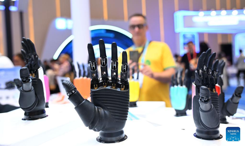 Bionic hands are pictured at the 139th edition of the China Import and Export Fair in Guangzhou, south China's Guangdong Province, April 15, 2026. The 139th edition of the China Import and Export Fair, also known as the Canton Fair, opened here on Wednesday. An exhibition area for service robots is set up at the event, bringing together 46 enterprises to showcase technological innovations and application capabilities in China's service robot sector. (Xinhua/Deng Hua)