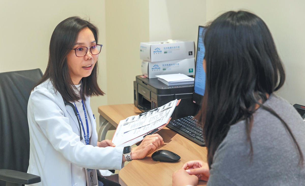 Yan Yiwen (left), a senior physician of the longevity clinic at SinoUnited Health in Shanghai, sees a "health seeker" on March 19. (Photos: China Daily)