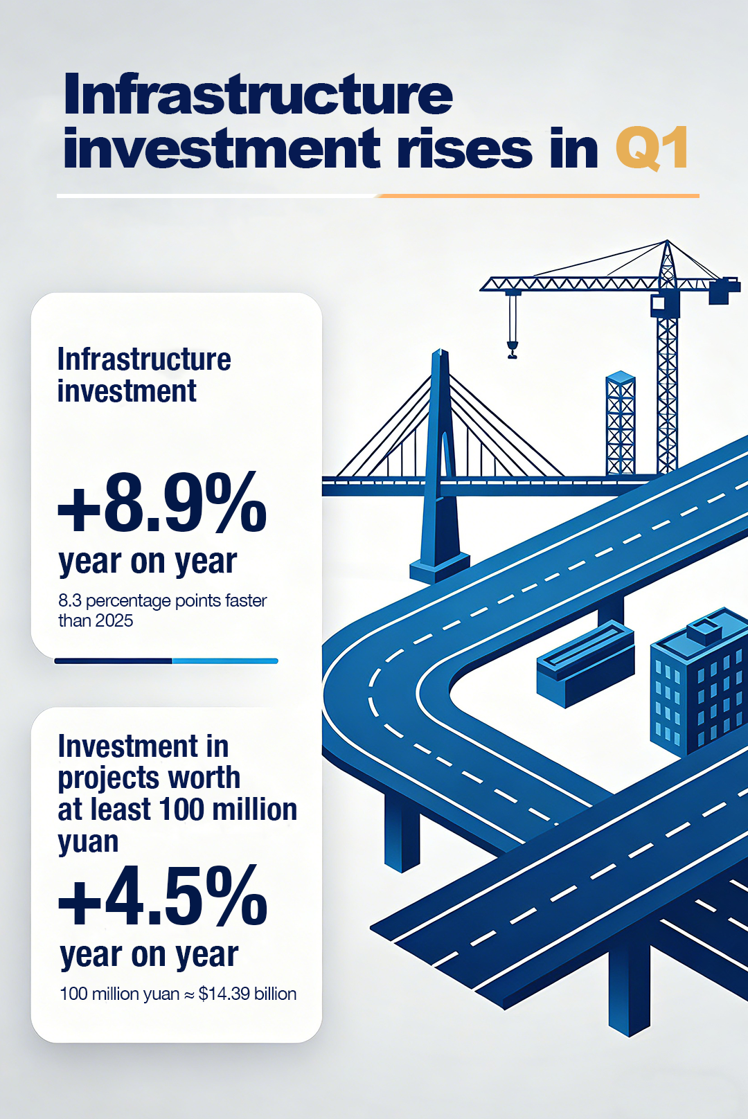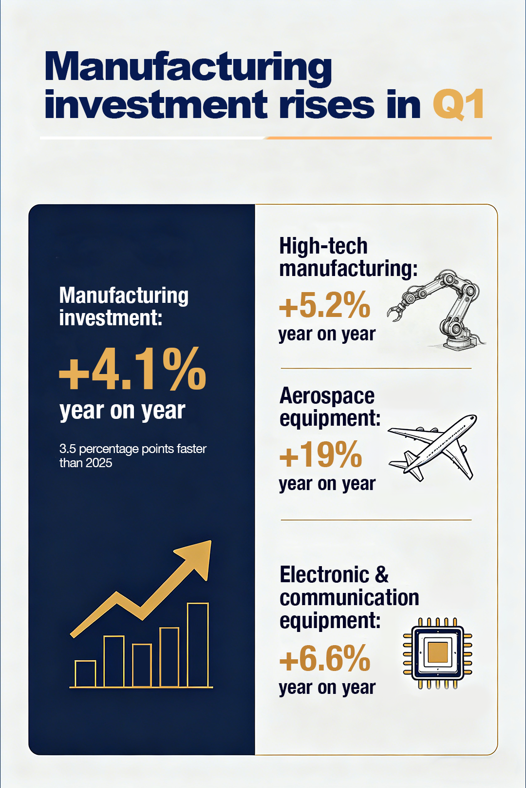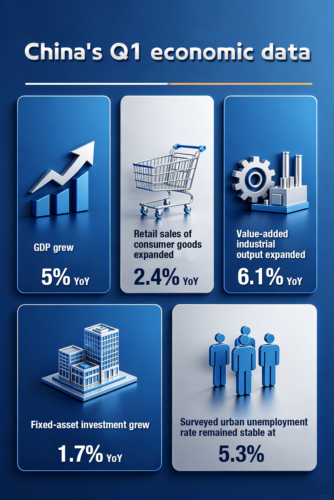 China's economy grew 5 percent in the first quarter of 2026, outpacing expectations of some foreign institutions and reinforcing the country's role as a stabilizing force in an increasingly volatile global economy. Check out the poster for more details.