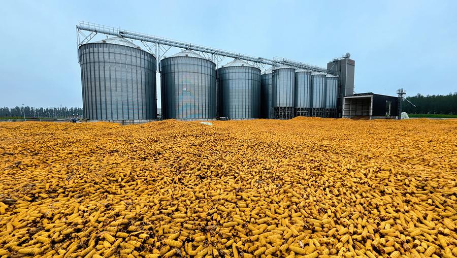 Powered drying facilities for harvested corns are seen in Dezhou City, east China's Shandong Province, Oct. 9, 2025. (Photo: Xinhua)