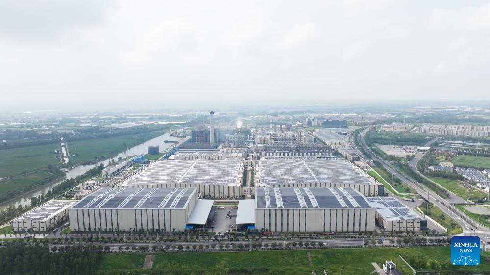 This undated file photo shows a view of Shenghong new material industrial park where Ruibang Technology Co., Ltd. is located in Siyang County of Suqian, east China's Jiangsu Province. Ruibang is a world-leading manufacturer of recycled polyester filaments and is active in implementing zero-carbon actions in the industry.