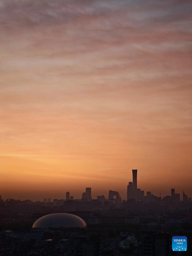 This photo taken on April 21, 2026 shows a view of the morning glow over Beijing, capital of China. (Xinhua/Xing Guangli)