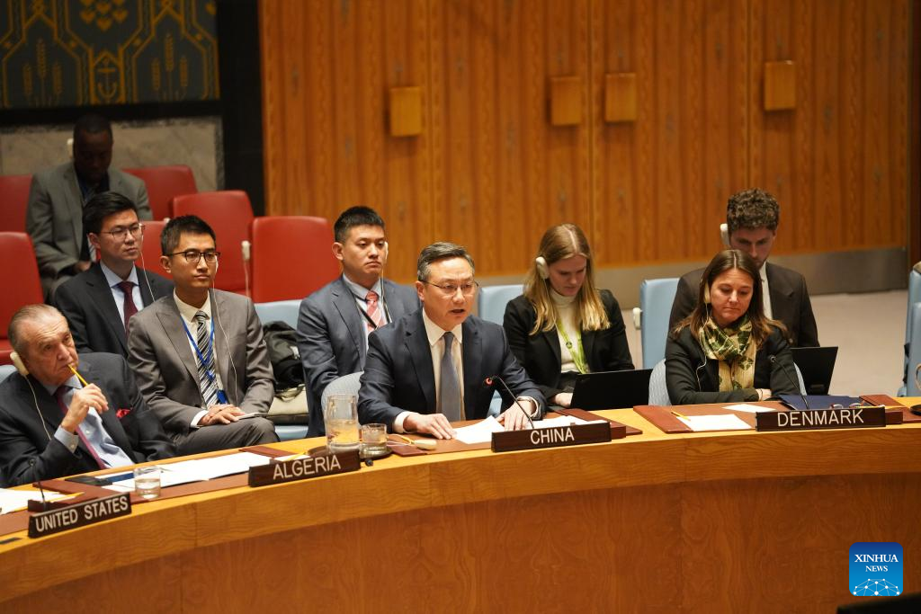Sun Lei (C), China's deputy permanent representative to the United Nations, speaks at an emergency meeting of the Security Council at the UN headquarters in New York, on Dec. 29, 2025. (File photo: Xinhua)