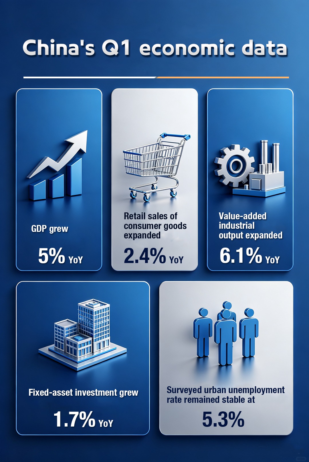 China's economy grew 5 percent in the first quarter of 2026, outpacing expectations of some foreign institutions and reinforcing the country's role as a stabilizing force in an increasingly volatile global economy. Check out the posters for more details. (Produced by Sun Tianren, Zhu Yurou, Liang Xiaojian, Li Mingzhi, Lou Qingqing, Li Qinfang and Li Zhuoman)