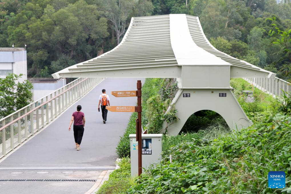 This photo taken on April 21, 2026 shows a view of Kunpeng Trail No. 3 Bridge in Shenzhen, south China's Guangdong Province. In recent years, Shenzhen has explored a distinctive path for biodiversity conservation in urban areas by developing ecological trails, building eco-friendly facilities and implementing refined ecological management. These efforts have reserved sufficient space for wildlife habitats and migration routes, creating "dual trails" to support the harmonious coexistence of humans and wildlife. (Xinhua/Liang Xu)