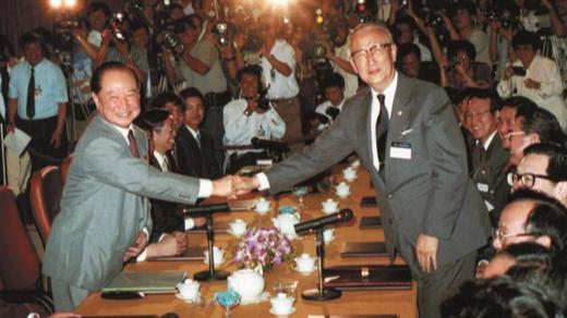 Thirty three years ago, at Singapore's NOL Building, Wang Daohan, then president of the mainland-based Association for Relations Across the Taiwan Straits (ARATS), and Koo Chen-fu, chairman of the Taiwan-based Straits Exchange Foundation (SEF), stood up from across the table and shook hands. More than 200 journalists witnessed the historic moment: the first formal high-level contact between the two sides of the Taiwan Strait since 1949.