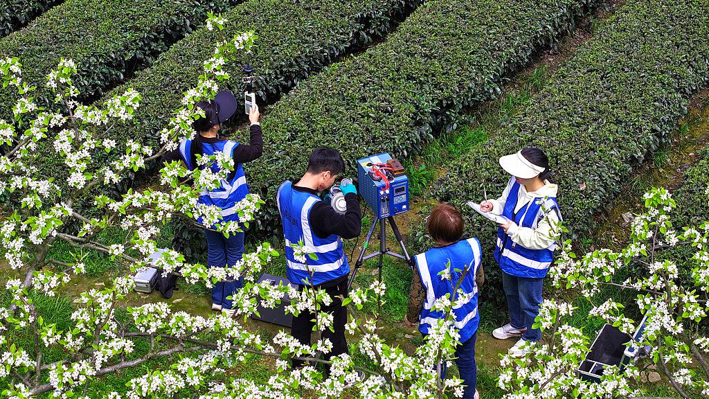 Environmental monitoring staff conduct air quality and ecological factor monitoring in central China's Hubei Province, March 31, 2026. (Photo: VCG)