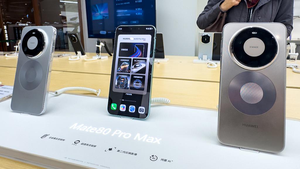 A Huawei smartphone retail store in Shanghai displays Huawei Mate 80 series phones running HarmonyOS, December 12, 2025. (Photo: VCG)