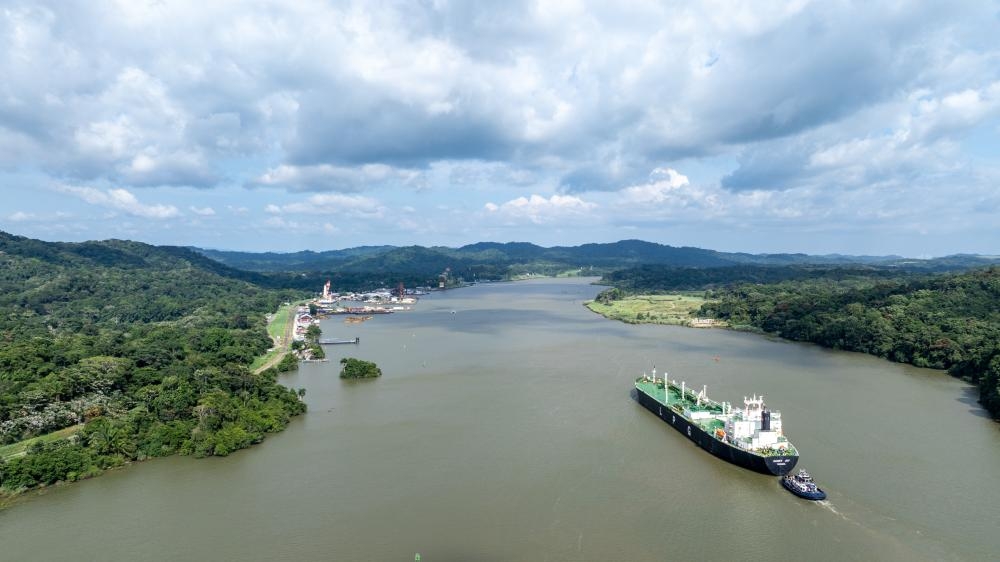 A drone photo shows vessels sailing on the Panama Canal near Panama City, Panama, Aug. 28, 2024. (File photo: Xinhua)