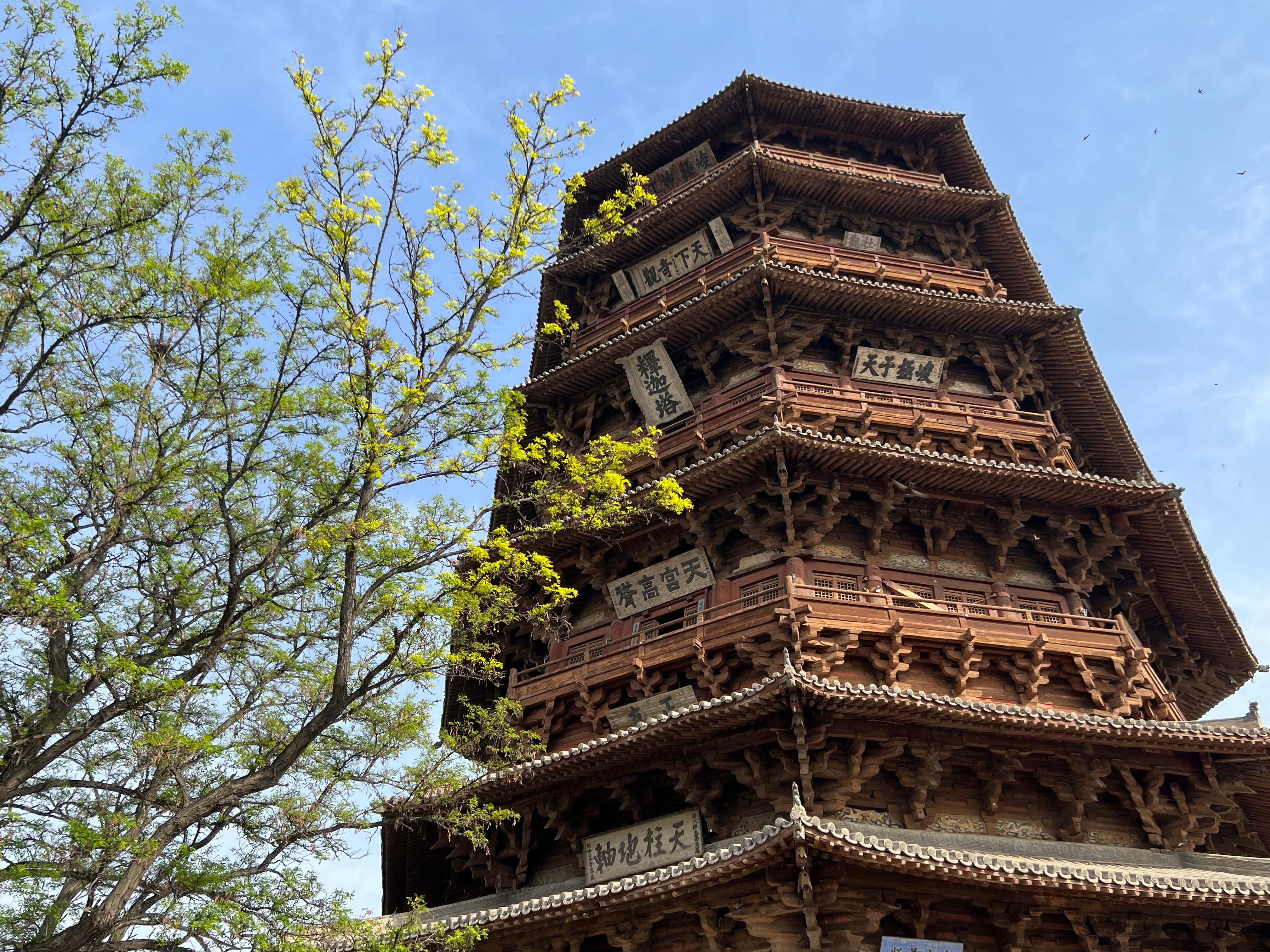A view of the Yingxian Wooden Pagoda, the world's tallest wooden pagoda also known as the Sakyamuni Pagoda of the Fogong Temple, in Yingxian County, North China’s Shanxi Province, on April 26, 2024. (Photo: Li Xuanmin/GT)