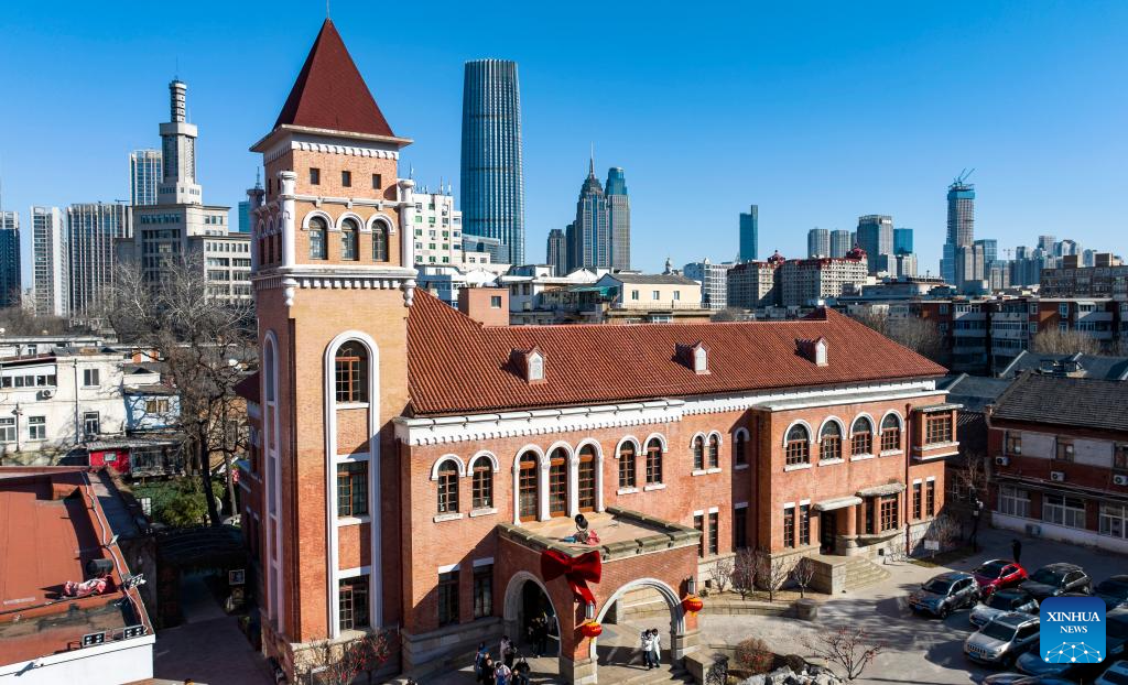 A drone photo shows a view of Zhangyuan in Heping District of Tianjin, north China, Jan. 10, 2026. Zhangyuan, or Zhang's Garden, reopened to the public after a 50-day renovation project. The mansion, built in 1915, was listed as a national key cultural relics protection site. (Xinhua/Zhao Zishuo)