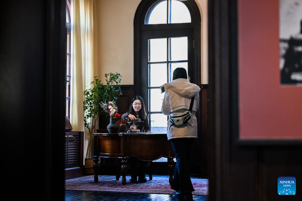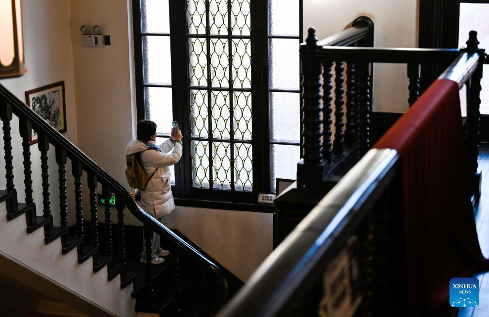 A tourist visits Zhangyuan in Heping District of Tianjin, north China, Jan. 10, 2026. Zhangyuan, or Zhang's Garden, reopened to the public after a 50-day renovation project. The mansion, built in 1915, was listed as a national key cultural relics protection site. (Xinhua/Zhao Zishuo)