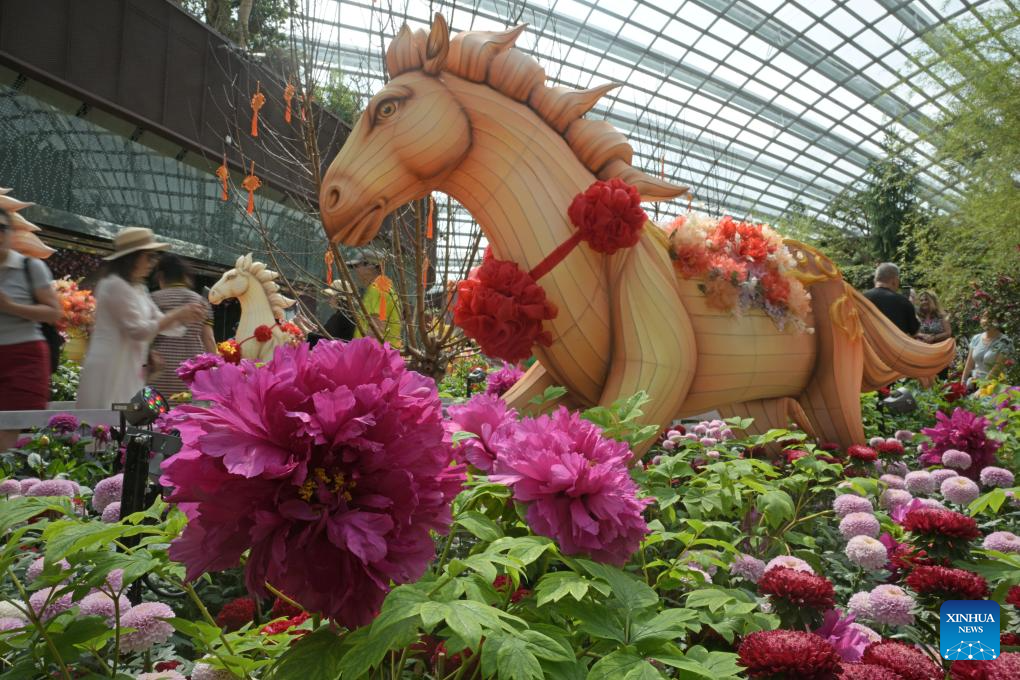 Floral display held in Singapore to greet upcoming Chinese Year of the Horse