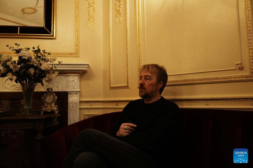 British musical actor John Owen-Jones receives an interview at His Majesty's Theatre in central London, Britain, Dec. 22, 2025. (Xinhua/Zhao Jiasong)