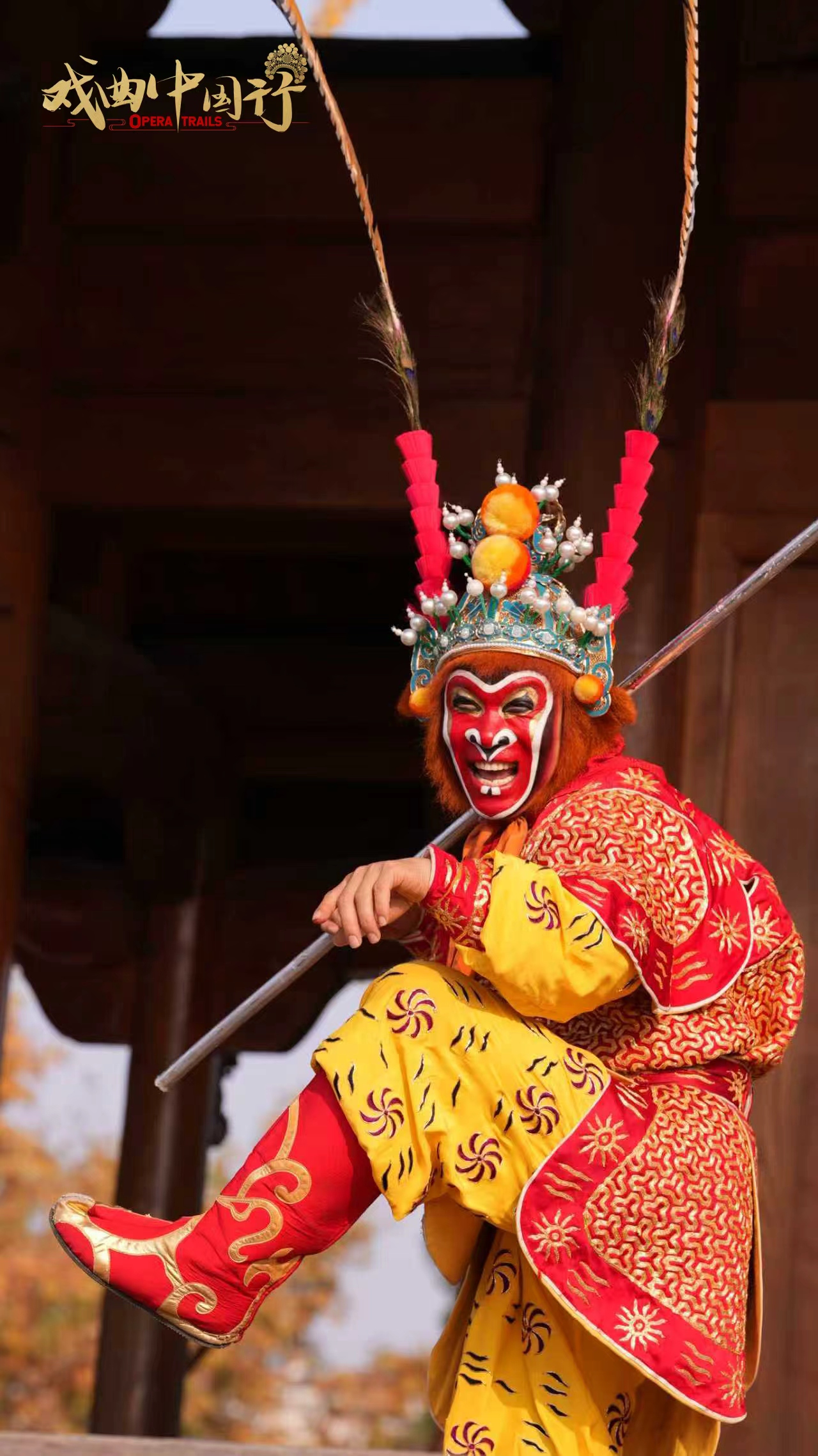 Wu Opera actor Wang Weixuan dresses as the Monkey King in "Golden Monkeys Welcoming Spring." /CGTN