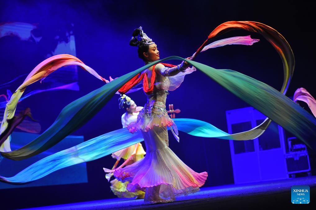 Artists stage a performance during a cultural event celebrating the upcoming Chinese New Year in Tunis, Tunisia, Jan. 31, 2026. Kicking off here on Saturday, the two-day event is themed on the Chinese New Year and the ancient Silk Road. (Photo by Adel Ezzine/Xinhua)