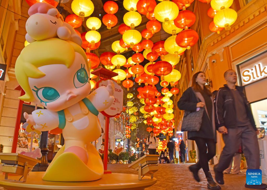 People take photos of festive lanterns on Lee Tung Street in Hong Kong, south China, on Feb. 5, 2026. These lanterns are hoisted to mark the upcoming Chinese New Year. (Xinhua/Chen Duo)