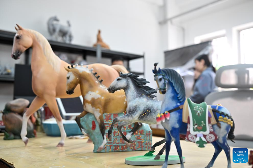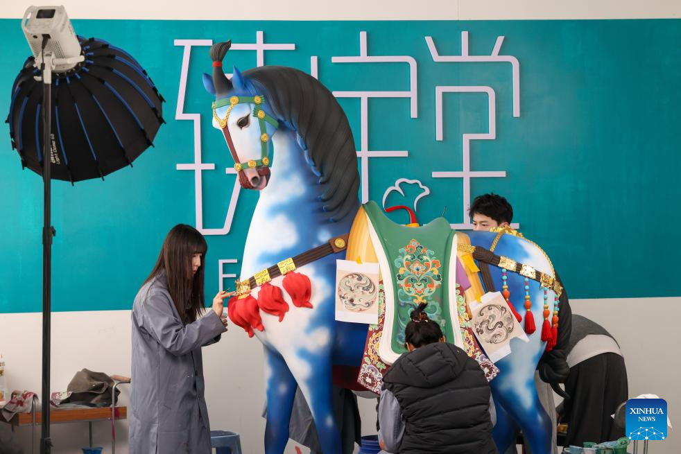 Craftsmen create horse-themed sculptures to greet Chinese New Year in Tianjin