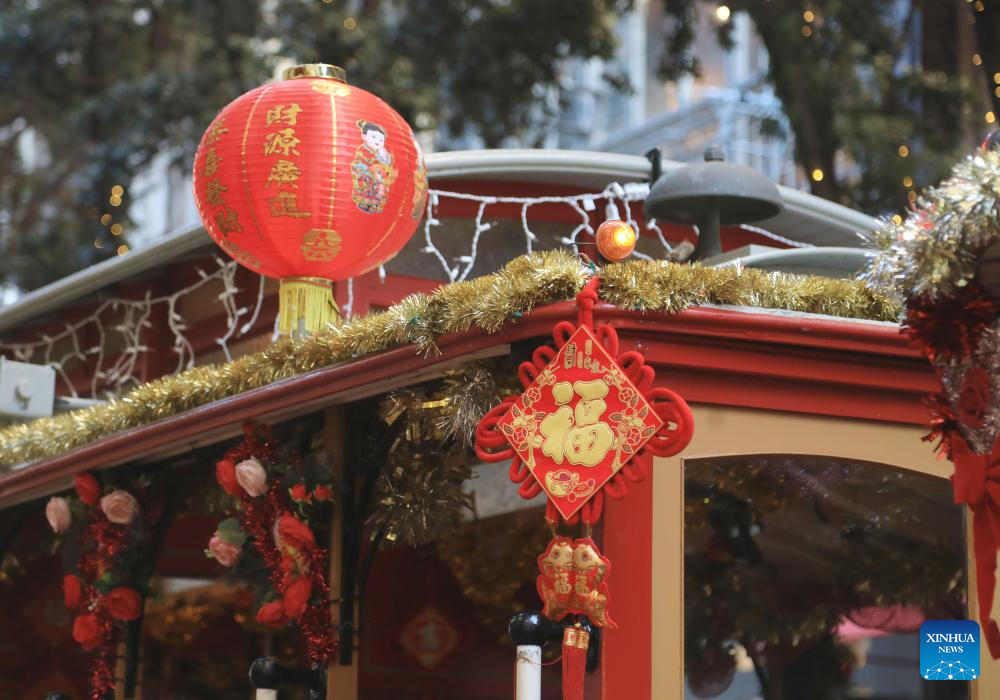 A sightseeing cable car decorated to celebrate the upcoming Chinese New Year is seen in San Francisco, the United States, Feb. 6, 2026. (Photo by Liu Yilin/Xinhua)