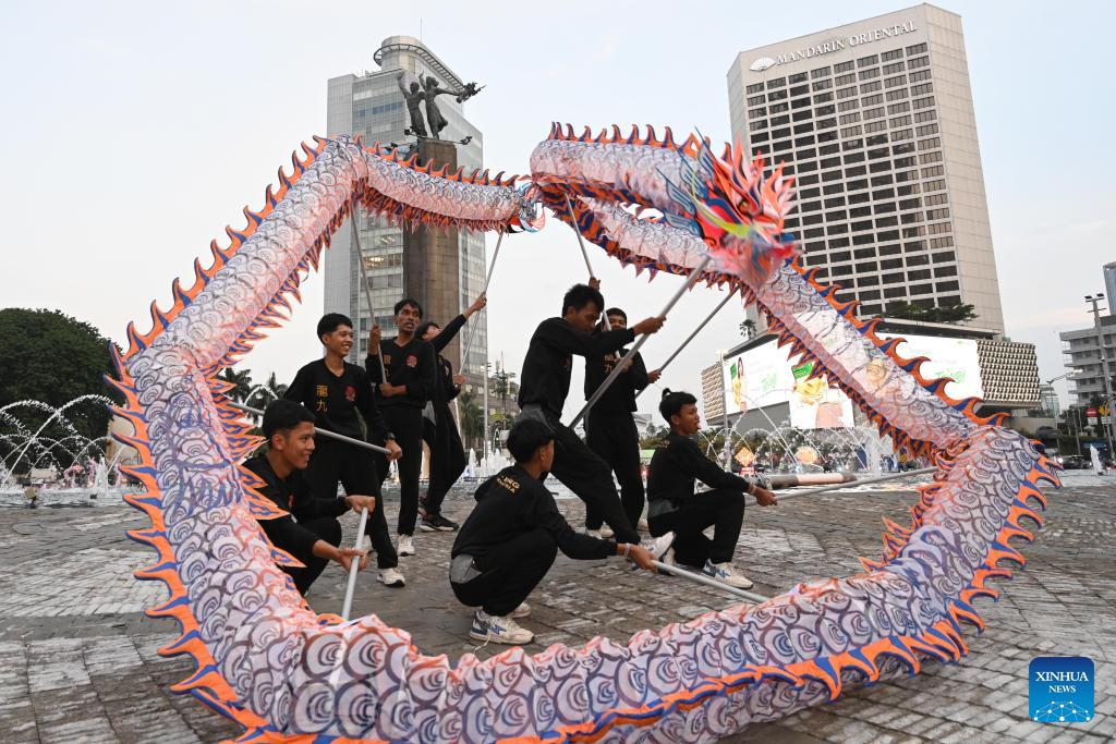 A dragon dance show is staged to celebrate the Chinese New Year in Jakarta, Indonesia, Feb. 13, 2026. (Xinhua/Agung Kuncahya B.)