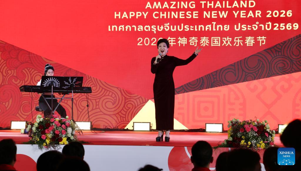 Artists stage a performance at Siam Paragon shopping mall in Bangkok, Thailand, Feb. 14, 2026. A series of events celebrating Chinese New Year are held here from Feb. 14 to 18, bringing a strong festive vibe to visitors. (Xinhua/Sun Weitong)