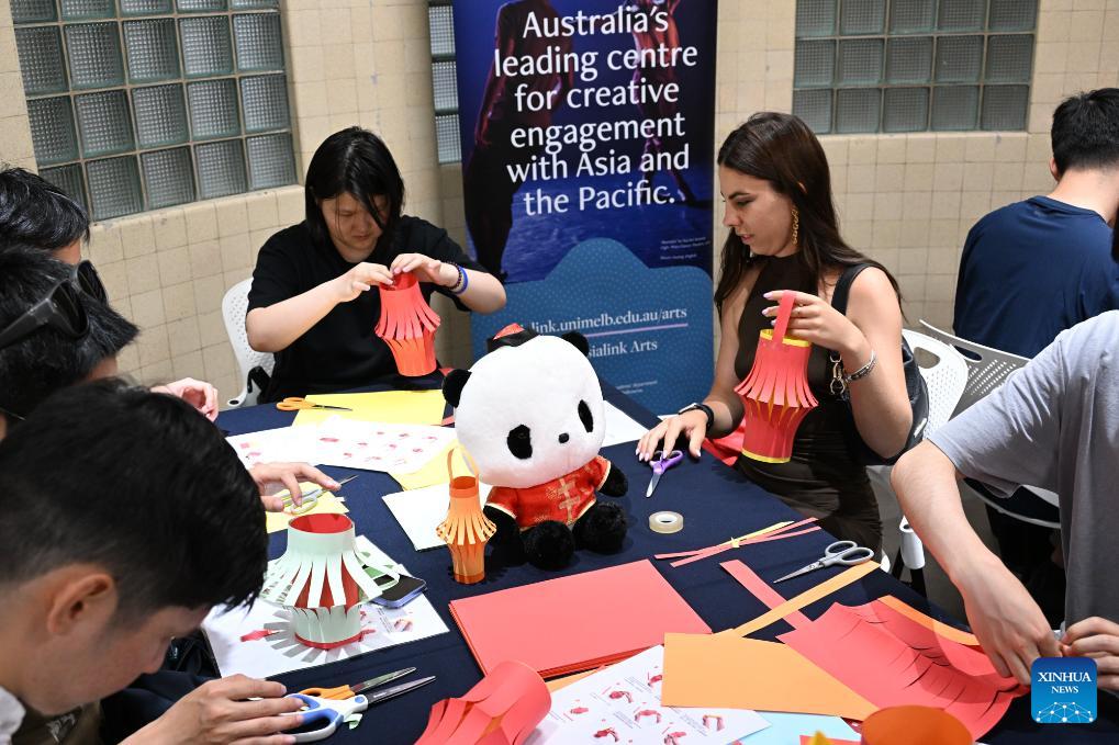 Students make paper lanterns in celebrations of the Chinese New Year at the University of Melbourne in Melbourne, Australia, Feb. 17, 2026. (Xinhua/Xu Haijing)