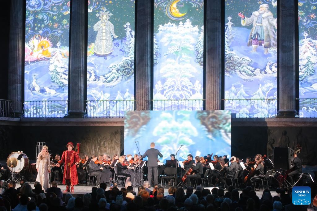 Russian dancers perform during a concert staged to celebrate the Chinese New Year in St. Petersburg, Russia, Feb. 15, 2026. (Photo by Irina Motina/Xinhua)
