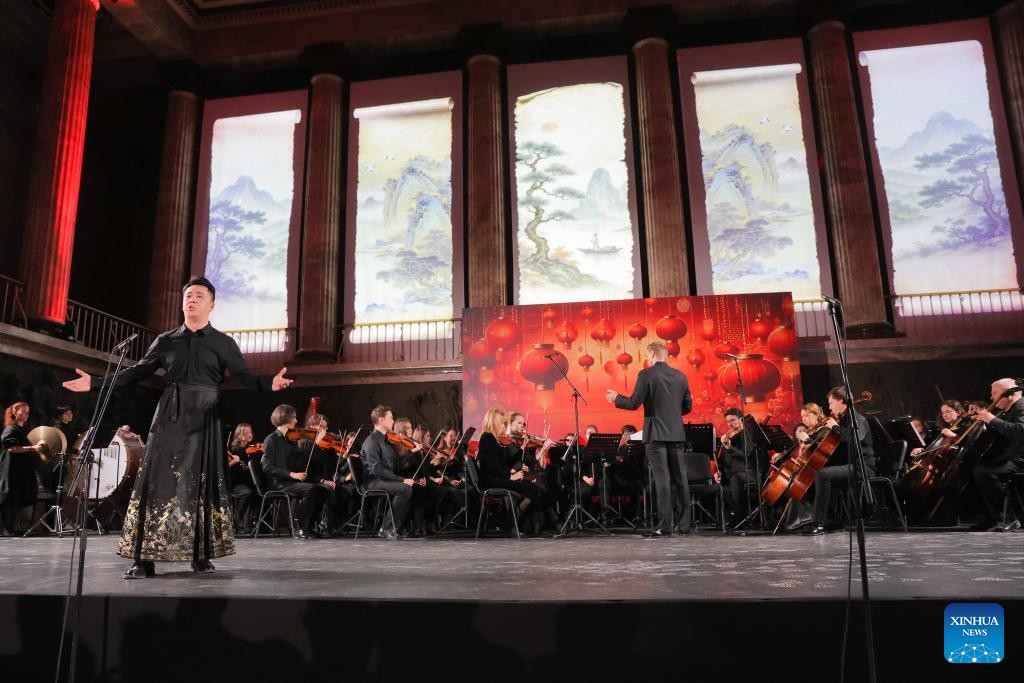 Russian singers perform during a concert staged to celebrate the Chinese New Year in St. Petersburg, Russia, Feb. 15, 2026. (Photo by Irina Motina/Xinhua)