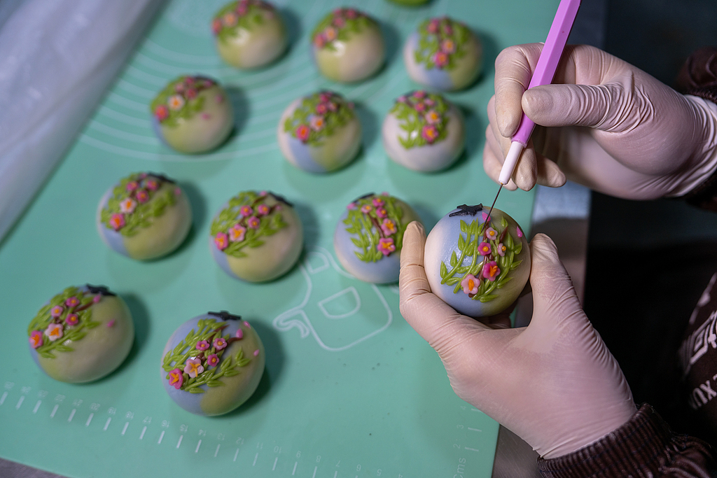 In Jinhua, east China's Zhejiang Province, inheritors of the Qingming Guo tradition are crafting floral rice cakes by hand – using mugwort, purple sweet potato and dragon fruit to shape peach blossoms, winter jasmine and more.