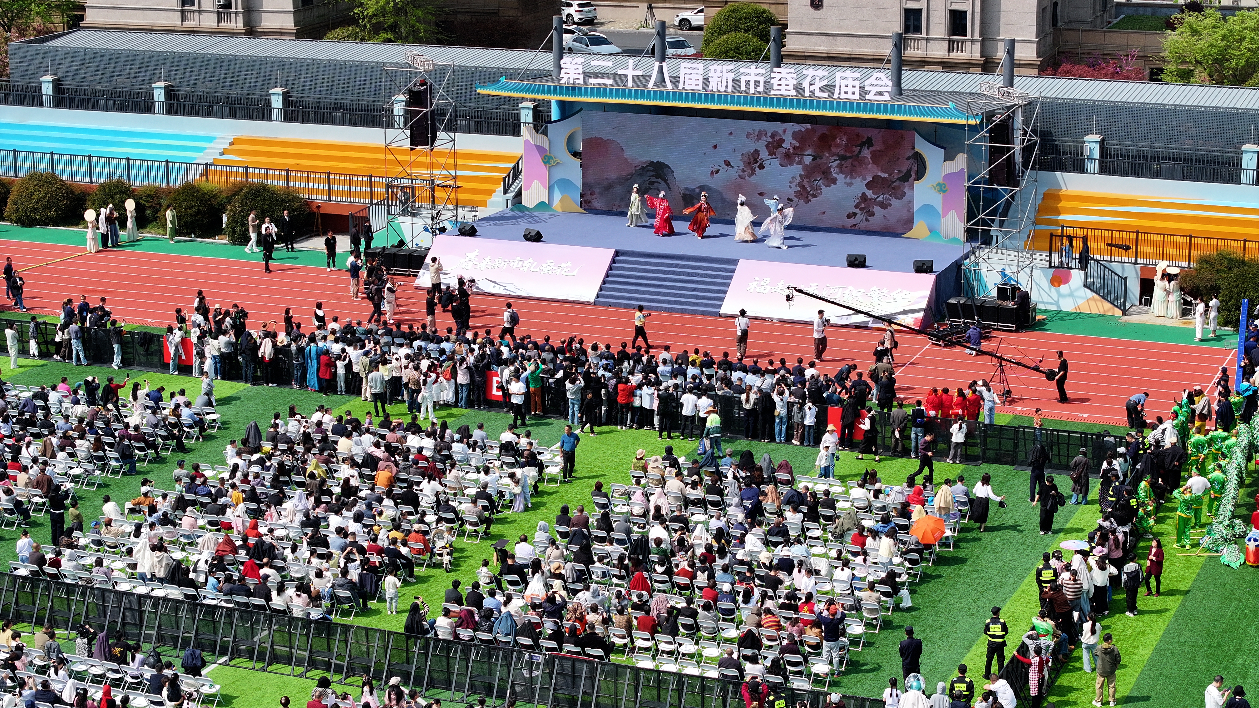 The 28th annual Xinshi Silkworm Flower Festival holds its grand opening in Xinshi Ancient Town in Deqing County, Zhejiang Province on April 4, 2026. /CGTN