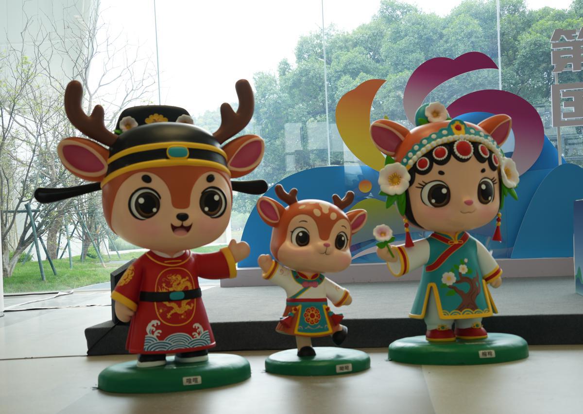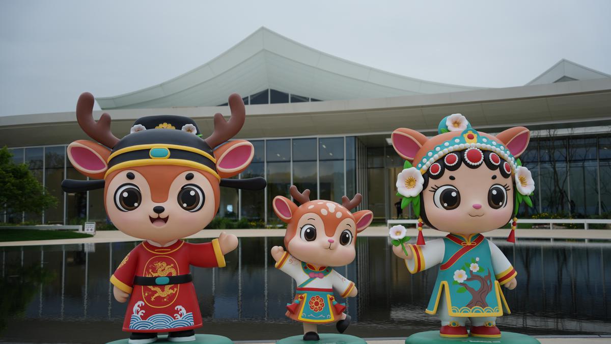 The three mascots of the 15th China International Garden Expo are seen at the Wenzhou Garden Expo Park on April 8. [Photo by Qi Xiao/for chindaily.com.cn]
