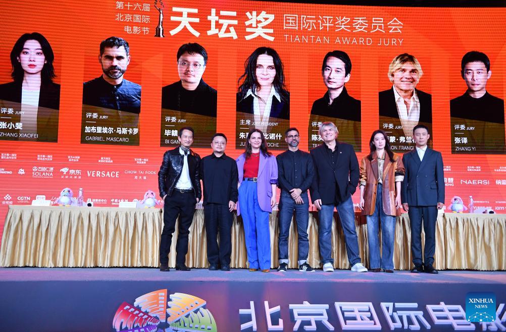 Members of the Tiantan Award Jury of the 16th Beijing International Film Festival (BJIFF) pose during the 16th BJIFF Jury Press Conference in Beijing, capital of China, April 18, 2026. (Xinhua/Xiao Xiao)