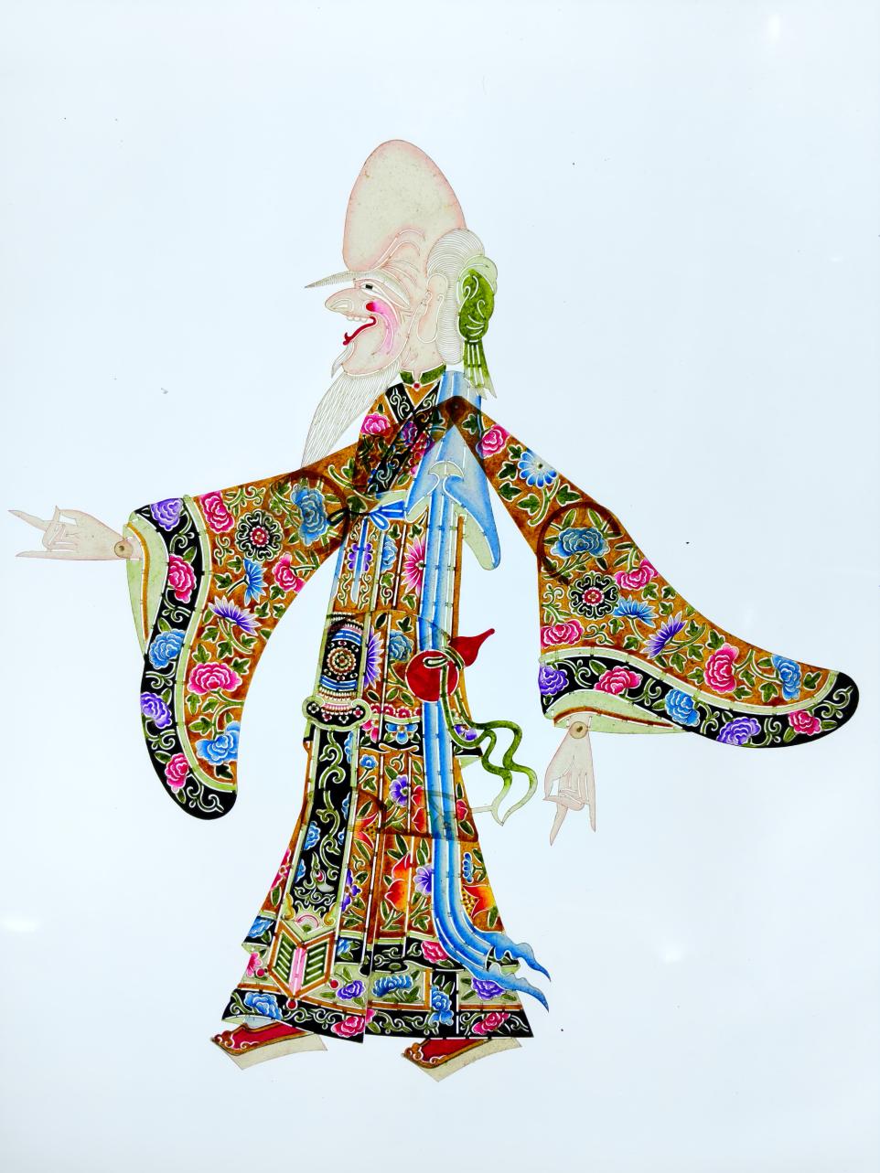 Each Chen-style Huayin shadow puppet is made up of 11 separate parts, including the head, chest, waist, two upper arms, two lower arms, two legs, and two hands. These components are carved individually before being carefully assembled into a complete figure.