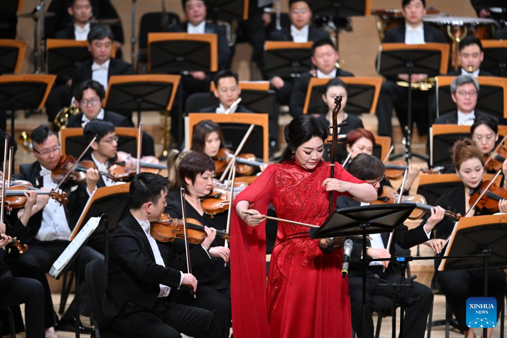Erhu artist Song Fei performs during the opening of the 2026 Tianjin Music Festival at Tianjin Grand Theater in north China's Tianjin, on April 26, 2026. The 2026 Tianjin Music Festival kicked off here on Sunday. Covering theater performances, immersive characteristic performances, and mass public welfare performances, it will present nearly a hundred music events and last until July 5. (Xinhua/Sun Fanyue)