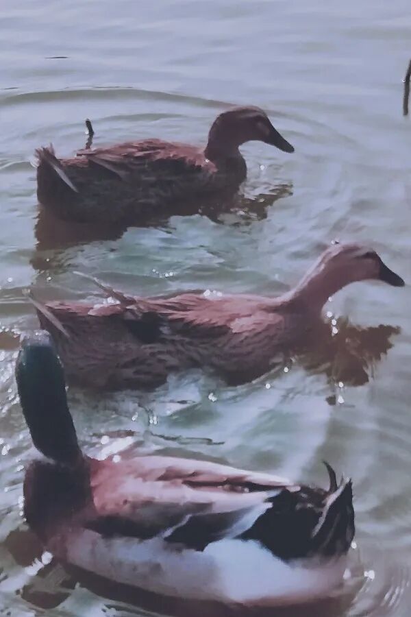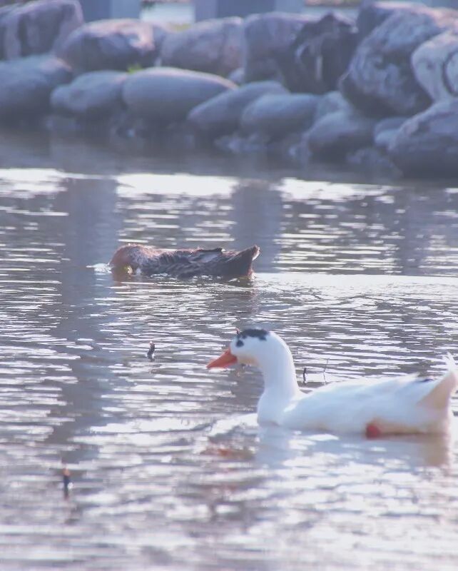 Ducks are the first to know the arrival of spring. Ripples on the pond's surface make water clearer.
