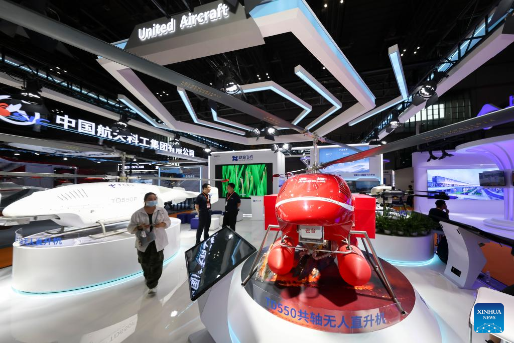 This photo taken on May 13, 2025 shows an unmanned helicopter used for emergency rescue at the booth of Chinese UAV enterprise United Aircraft at the fourth Yangtze River Delta International Emergency Disaster Reduction and Rescue Expo in Shanghai, China. (Photo: Xinhua)