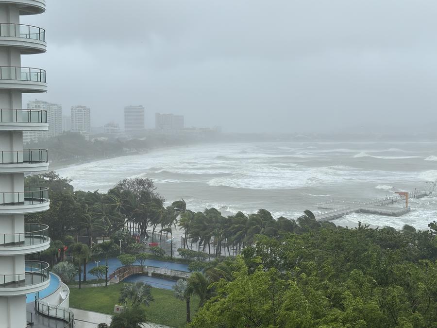 Strong winds and rough waves are seen at the Dadonghai sea area in Sanya, south China's Hainan Province, June 13, 2025. (Photo: Xinhua)